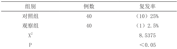 复发率对照组较高, P<0.05 。