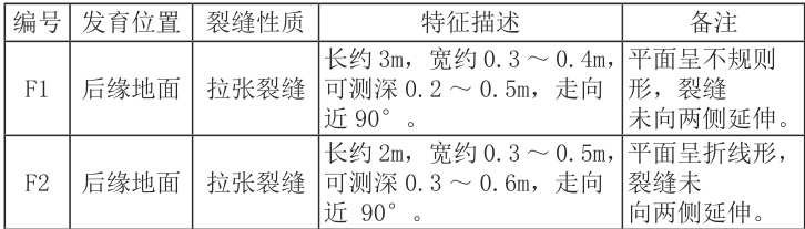 滑坡裂缝特征统计表 表 1