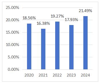 如图 2 所示、2024 年,浙江省民营企业贡献了全省 80% 以上的就业岗位,吸收了本地和外来务工人员约 3000 万就业人口;但由于中小型民营企业,薪酬竞争力不足、管理方式落后、企业文化薄弱、外部竞争加剧等问题,导致企业人才流失严重。