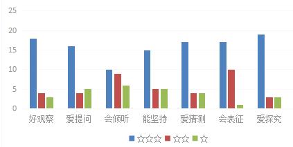 结合幼小双向衔接背景下培养幼儿专注力策略应用效果,小班幼儿的专注力指标和专注力培养效果如图 1 所示,能够发现大部分小班幼儿的专注力明显提升,专注力培养策略有良好的教育效果。