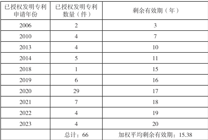 表1 已授权发明专利资产现状表
