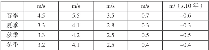 彰武县平均风速春季最大,夏季、秋季一致、冬季较小;峰值表现为春季> 秋季 > 夏季 Σ=Σ 冬季,高峰值出现在 2001 年春季,为 5.5m/s ;谷值表现为春季 > 夏季 > 秋季 Σ=Σ 冬季,低谷值出现在2019 年冬季,为 2.5m/s (表 2)。