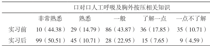 表1 高职护理专业实习生心肺复苏知识掌握情况 (n,%
