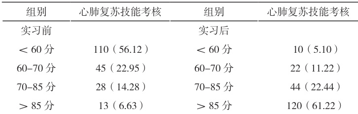 表2 高职护理专业实习生心肺复苏技能考核情况 [n,%