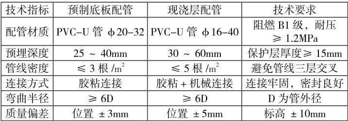表1 叠合楼板电气配管技术参数