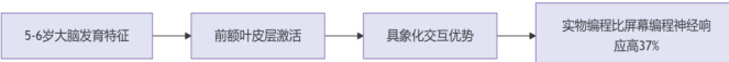 适龄数字素养启蒙资源严重不足,启蒙方式的“屏中视”过度专注于电子互动形式(如动画、APP 游戏),却忽略了多模态交互的重要性:实体交互被弱化(例如用平板编程替代实物卡片或机器人操作),割裂生活与技术联系(常规观察未链接显微镜相机、录音笔),致使儿童无法建立技术和生活的关联,解构具身化认知,更悖离入学准备所需的“真实境”。欲根植一代人的数字素养,幼儿数字素养教育须成为国家课程。在学前教育阶段确立其特殊地位与科学内涵,通过顶层设计的方式明确幼儿数字素养培育的方向、策略、规范等,为幼儿数字素养奠基。