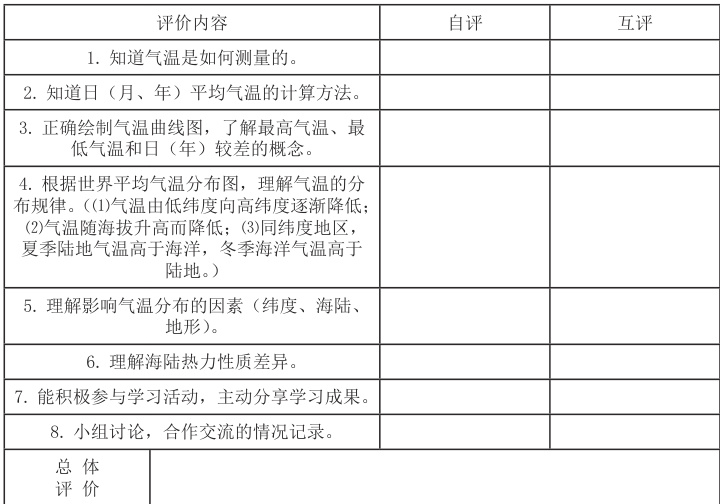 在《气温的变化与分布》课堂教学中,笔者根据评价标准,设计了如下表现性任务: