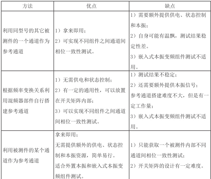 一是利用同型号的其它被测件的一个通道作为参考通道,好处是拿来即用,并可实现不同组件之间通道间相位一致性测试。坏处是需要额外提供供电、状态控制和本振信号,自身可能还有温飘,这给系统集成带来很大的麻烦。该方式一般不建议采用。