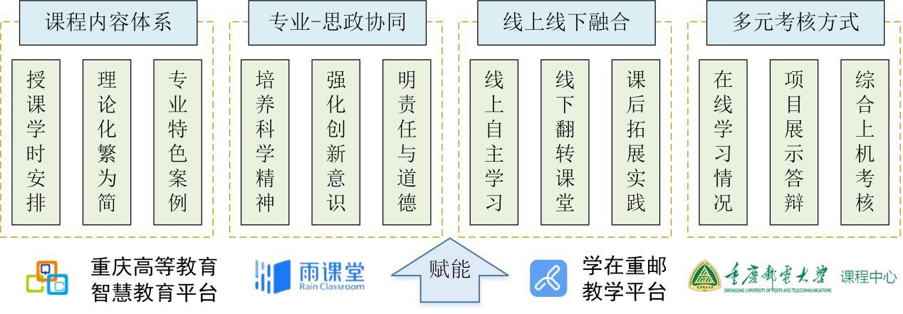 针对以上问题,本文提出依托“学科 + 思政”融合重构内容,建设线上资源库,并利用数字化工具开展多元考核,从而激发学生主动性,提升其知识、能力与价值塑造相统一的综合素养,具体思路如图1 所示。