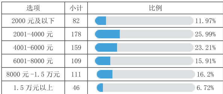 问卷调查显示,64.09% 的老年人认为年游学频率以1-2 次为宜,年消费预算集中在2001-6000 元区间(占比49.2%),表明中等规模、稳定频率的消费模式。这一特征要求市场提供性价比高、体验丰富的产品。表1. 单选题“您认为自己每年在游学上的适宜总花费为?”调查结果