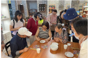 佛山依托历史与现代交融的资源优势,开发系列特色老年旅游课程。如岭南文化游学课程,通过课堂学习与实地探访开平碉楼、陈家祠等历史遗迹相结合(图 1,图 2),让老年人在游览中感受岭南文化魅力;非遗体验课程涵盖广彩、广绣、粤剧等传统艺术(图 3,图 4),通过亲手制作与表演增强文化认同;中医养生、茶文化研学课程则以讲座 + 实践形式传授健康知识,助力老年人提升生活质量。这些课程将文化体验与旅游教育深度融合,既满足学习需求,又丰富旅行内涵。