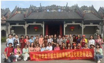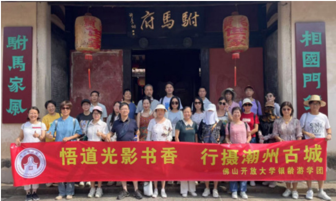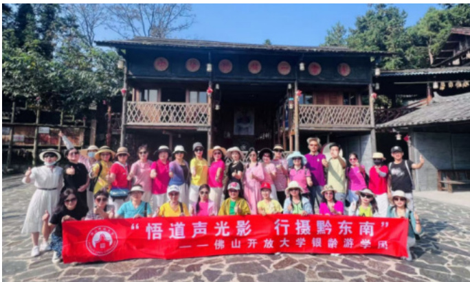 佛山老年教育机构可通过两方面推动创新发展: 是与旅游企业、景区深度融合,共同开发养生旅游、文化旅游、乡村旅游等适老产品, 制化服务 促进教育与产业协同;二是加强跨区域合作,比如说与黔东南开放大学、潮州商会等联合举办了多期游学活动(图 5,图 6)。同时,通过参加国内外旅游展会展示文化魅力,拓宽发展空间、提升影响力,为老年旅游产业创新提供支持。