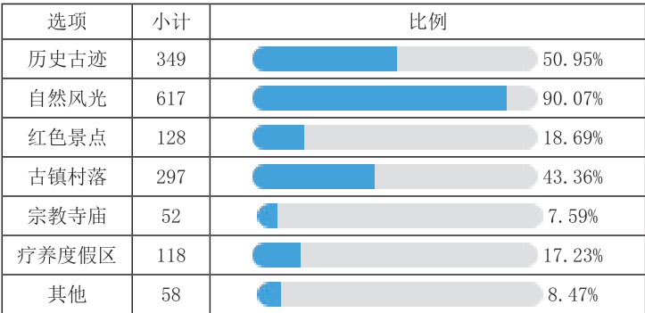 2. 资源偏好与体验诉求(1)自然与文化并重:90.07% 的老年人倾向自然风光类目的地,50.95% 关注历史古迹,反映“生态+ 文化”的双重需求。
