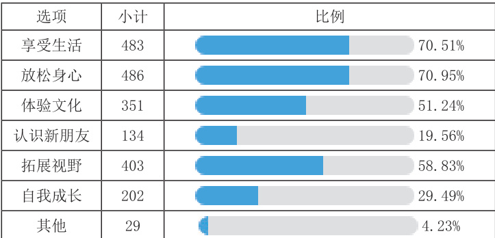 (2)体验深度化:70.51% 以享受生活为目的,58.83% 期望拓展视野,凸显从“观光”到“体验”的消费