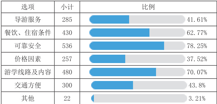 表4. 多选题“选择游学产品时,您觉得最重要的是:”调查结果