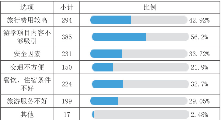 表6. 多选题“您认为制约您游学的主要因素有:”调查结果