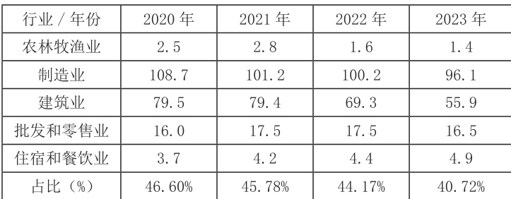 表1 :2020 年—2023 年江西省城镇单位就业人数表