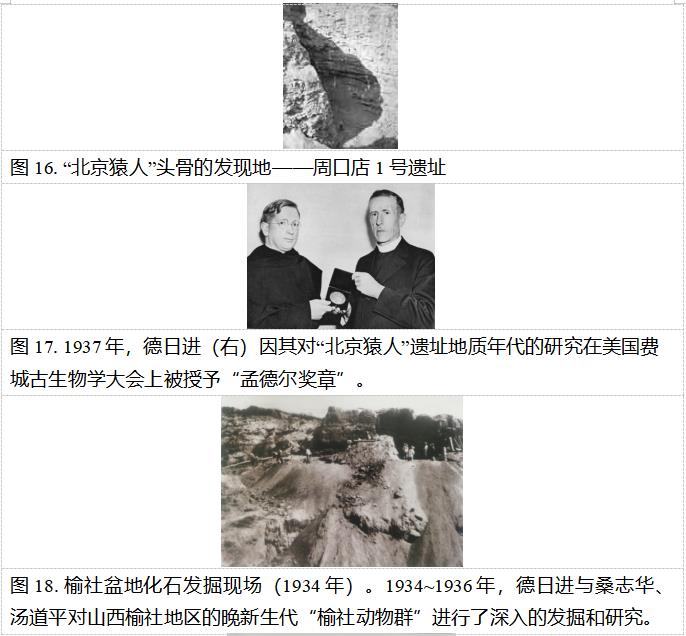 德日进来华之初的梦想就是在中国“寻找黄土形成之前的人类”。自从1923年在北疆博物院发现了“河套人牙”,德日进就一直在思索该如何在中国寻找古人类。1929年,他接受邀请以中国地质调查所新生代研究室名誉顾问的身份参加周口店“北京猿人”遗址的发掘工作,同时继续与北疆博物院合作。1937年,德日进出席美国费城古生物学大会,并因其对“北京猿人”遗址地质年代的研究被授予“孟德尔奖章”。