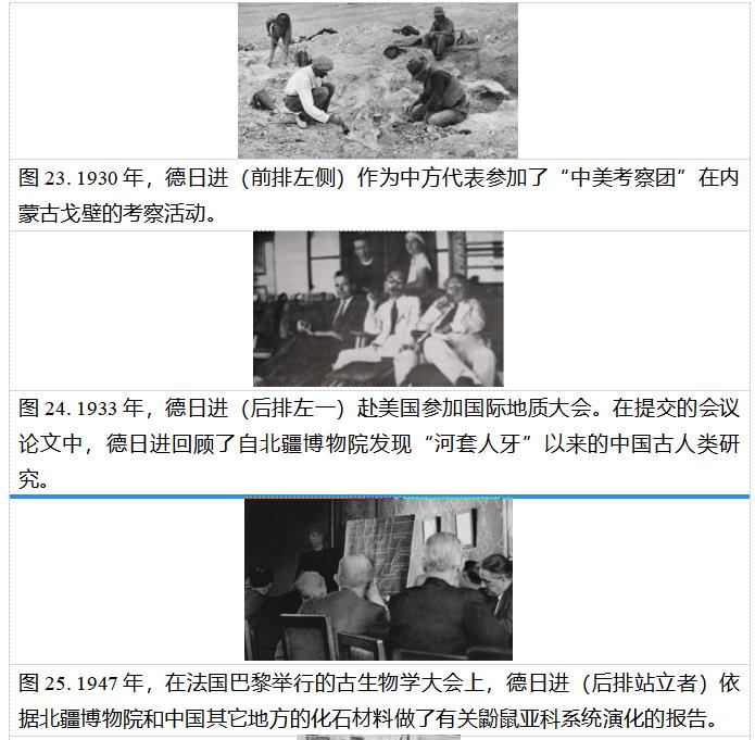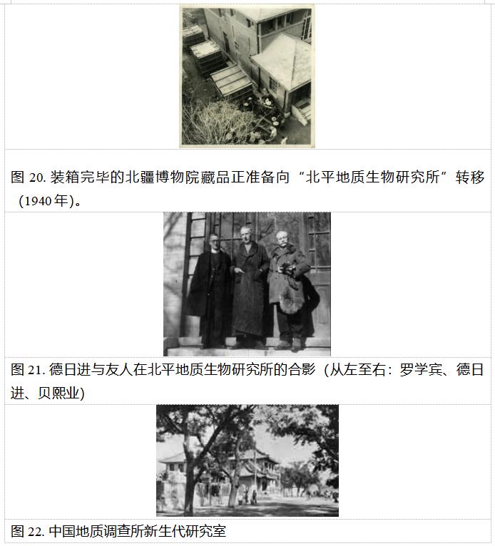 1934~1936年,德日进与桑志华、汤道平对山西榆社地区的晚新生代“榆社动物群”进行了深入的发掘和研究。1940年,为躲避战乱和水灾,接替桑志华管理北疆博物院的罗学宾和德日进决定建立“北平地质生物研究所”,以转移北疆博物院的藏品和继续研究工作,并由德日进任名誉所长。1945年,德日进和罗学宾将北平地质生物研究所中北疆博物院的藏品交由中国地质调查所新生代研究室保管。1946年,德日进离开中国后便再没有返回。