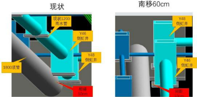 使用 BIM 技术对整个曲线顶管段范围建立三维管线立体模型,分析曲线顶管施工管线影响。并对各种影响管线进行搬迁或者变更顶管设计轴线,以避开影响管线。