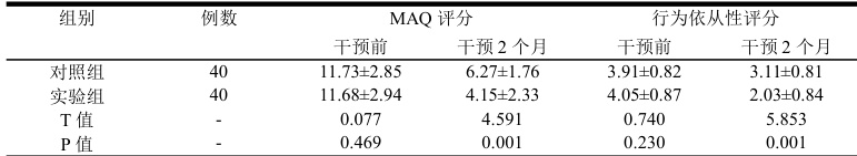 表2 两组患儿的用药依从性与行为依从性评分对比( )