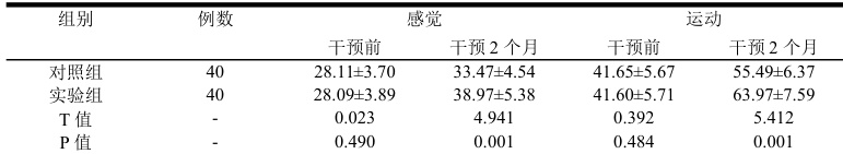 干预前,两组患儿的美国脊髓损伤协会评分对比无显著差异, P>0.05 。干预后,实验组患儿的感觉与运动评分均高于对照组,两组患儿的美国脊髓损伤协会评分对比差异显著, P<0.05 。见表3。