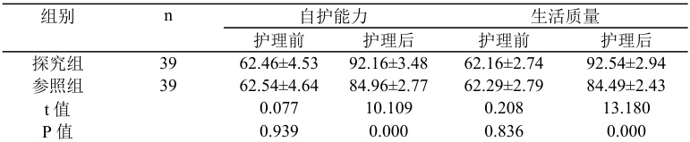 研究组患者护理后,自护能力,生活质量均优于参照组,差异有统计学意义(