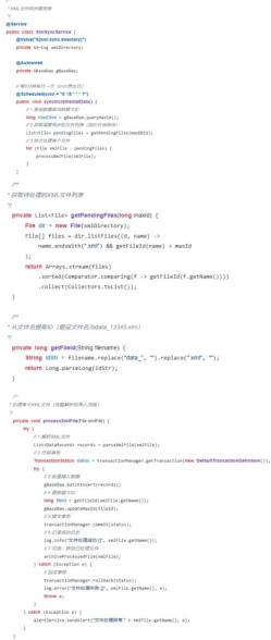 (1)文件监听模块:监控指定目录下的 XML 文件变化,根据递增编号识别新增文件。