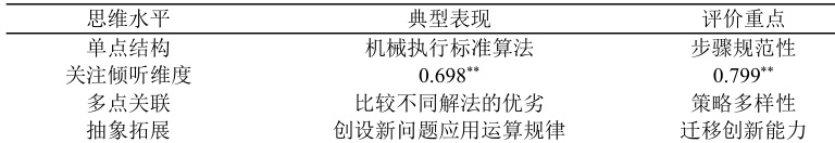 构建"三维评价框架",将运算准确性(如24 点游戏正确率)、思维灵活性(如多种解法创新度)、应用适切性(如购物找零方案合理性)纳入评价指标。开发"成长追踪工具",通过电子学习档案记录学生从"机械计算"到"策略优化"的思维进阶轨迹,如对比同一学生在整数运算与分数运算中的迁移能力变化。创新"即时反馈形式",采用"思维可视化评价"方式,让学生通过绘制解题思路图、录制算法讲解视频等多元形式展现思维过程。