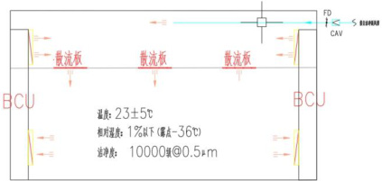 以常州金坛北电爱思特项目为例,此三元(NCM)锂电池干燥室车间打破了传统的DHU+高效送风口的模式,采用AHU(转轮除湿)+BCU+散流板的送回风形式,此形式相比传统的送回风形式大大减少了能量消耗。本设计采用双层彩钢板吊顶构成静压箱且维持正压,下吊顶与上吊顶间静压箱与车间气流通过BCU和散流板形成循环系统。这就更加提高了车间气密性在干燥室的重要性。