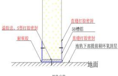 ④彩钢板安装完成后,对彩钢板和马槽、马槽与地面交接处缝隙再打密封胶处理