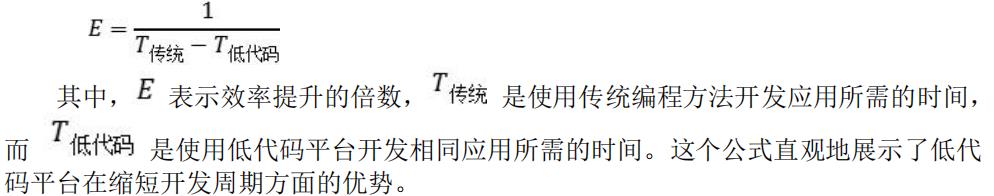 在数学上,可以将低代码平台的效率提升效果表示为一个公式: