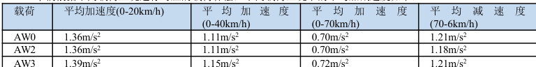 车辆根据不同载荷工况进行对应的载荷补偿,不同载荷工况下的平均加减速度如下: