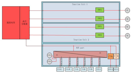 辅助变流柜的输入参数与牵引变流柜一致匹配超级电容的输入电压为DC450V-DC650V,输出包括 50kVA的AC380V、5kW的DC24V以及 1kW的DC110V,冷却方式为强迫风冷,包括输入过欠压保护,输出过欠压保护,输出过流、输出限流,过热保护等故障保护功能。