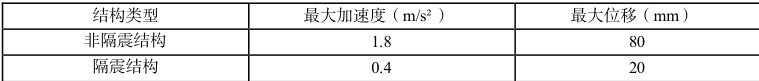 例如:某医院的建筑面积为 15000 平方米,对抗震要求较高,因此在结构设计阶段采用了基础隔震技术。结合医院的结构特点,在建筑基础与上部结构间设置了 60 个橡胶隔震支座。利用相关软件测试了隔震结构与非隔震结构的地震反应,如表 1 人们发现隔震结构的地震加速度、位移数据小于非隔震结构。这表明基础隔震技术能够在地震有效保护医院的安全。