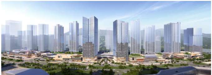 项目位于广东省珠海市,属于夏热冬暖地区,全年均有冷负荷需求,且持续高峰负荷出现的时间较长。从图 2 总体效果图可以看出,本项目由于商业占比高,横向跨度大,这些特征为本项目采用水蓄冷技术创造了有利的条件。