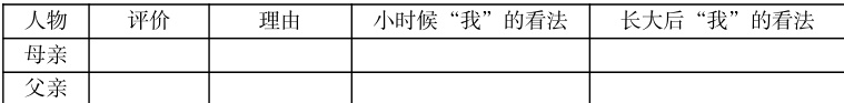 面对“童年写诗”这件事,父母评价有什么不同,“我”的反应怎样呢?请在文中找到相关句子填写下表。