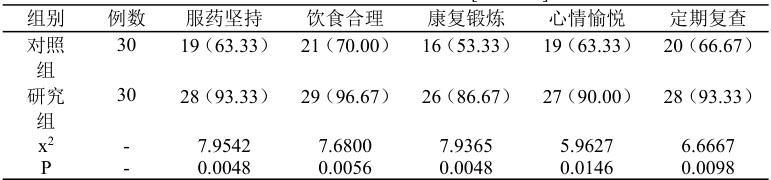 表 2 两组患者遵医行为比较 [n( (%) )]