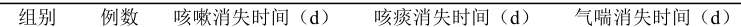 试验组咳嗽、咳痰、气喘消失时间均比参照组短, P<0.05 ,有统计意义。见表 1。