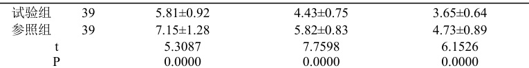 例)中男 22 例,女 17 例,年龄 42~81 岁,年龄均值为( 60.53± 4.64)岁。试验组( 1=39 例),男 21 例,女18 例,年龄 41~82 岁,年龄均值为(60.75±4.81 )岁。用统计学软件分析上述基础资料, P>0.05 ,无差异。