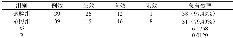 试验组临床疗效优于参照组, P<0.05 ,有统计意义。见表 2。