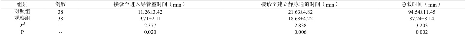 表1:两组急救效率比较(
