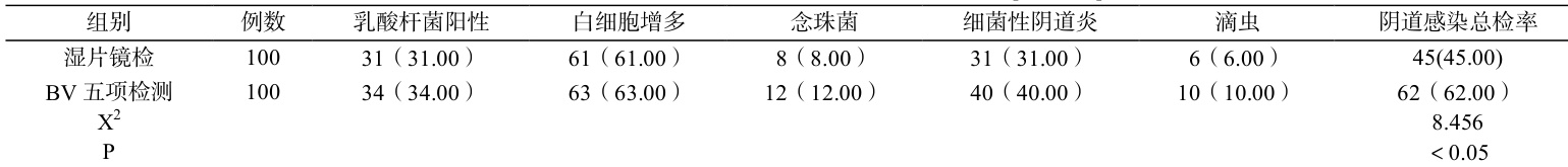 综上,相较于传统白带常规湿片镜检技术,BV 五项检测妊娠期阴道感染疾病的临床检出率有明显提高。