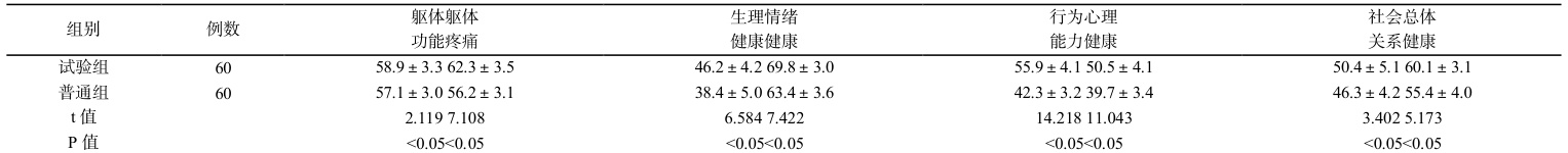 生命质量分析后其数据在试验组高于普通组 P<0.05 )。见表 2。