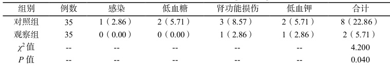 1.4.1 并发症发生率,包括感染、低血糖、肾功能损伤、低血钾等。