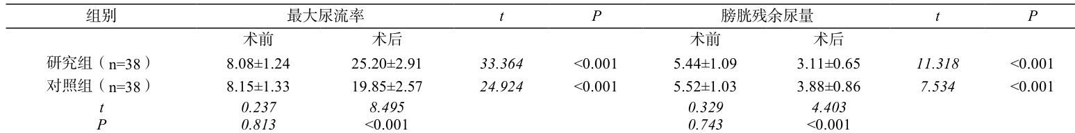 表 2 最大尿流率、膀胱残余尿量比较(