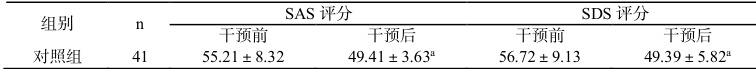 干预前,两组 SAS、SDS 评分对比 ⋅P>0.05⋅ ),两组干预后 SAS、SDS 评分均呈下降趋势,且观察组改变更突出( P<0.05 )。详见表 1。