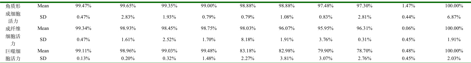 个浓度梯度,分别在四种细胞上进行细胞毒性试验,为后续功效评价筛选安全浓度,结果详见表 4