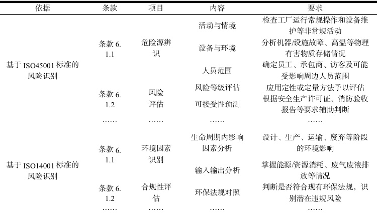表 3 ISO45001&ISO14001 审核风险识别依据与工作要求(部分)
