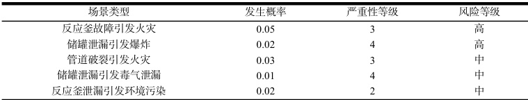 等方法,识别场景中的关键节点和影响因子,并构建每个事故链条。第三,评估风险场景的发生概率和严重性:对每个风险场景的发生概率和后果严重性进行评估。第四,风险矩阵应用:利用风险矩阵(将发生概率与严重性结合的 2×2 矩阵)评估每个场景的风险等级,根据矩阵结果来识别出园区内高风险场景,为后续的防控措施提供依据。